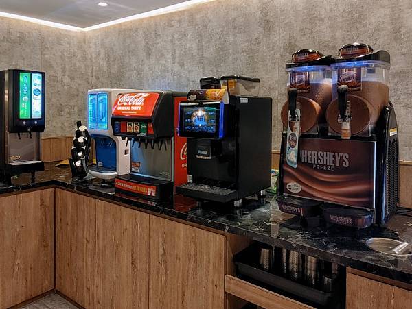 飲料選擇也太多了,冷熱飲都有、咖啡、熱牛奶、無糖茶、氣泡水、汽水通通有,還有冰沙呢 !